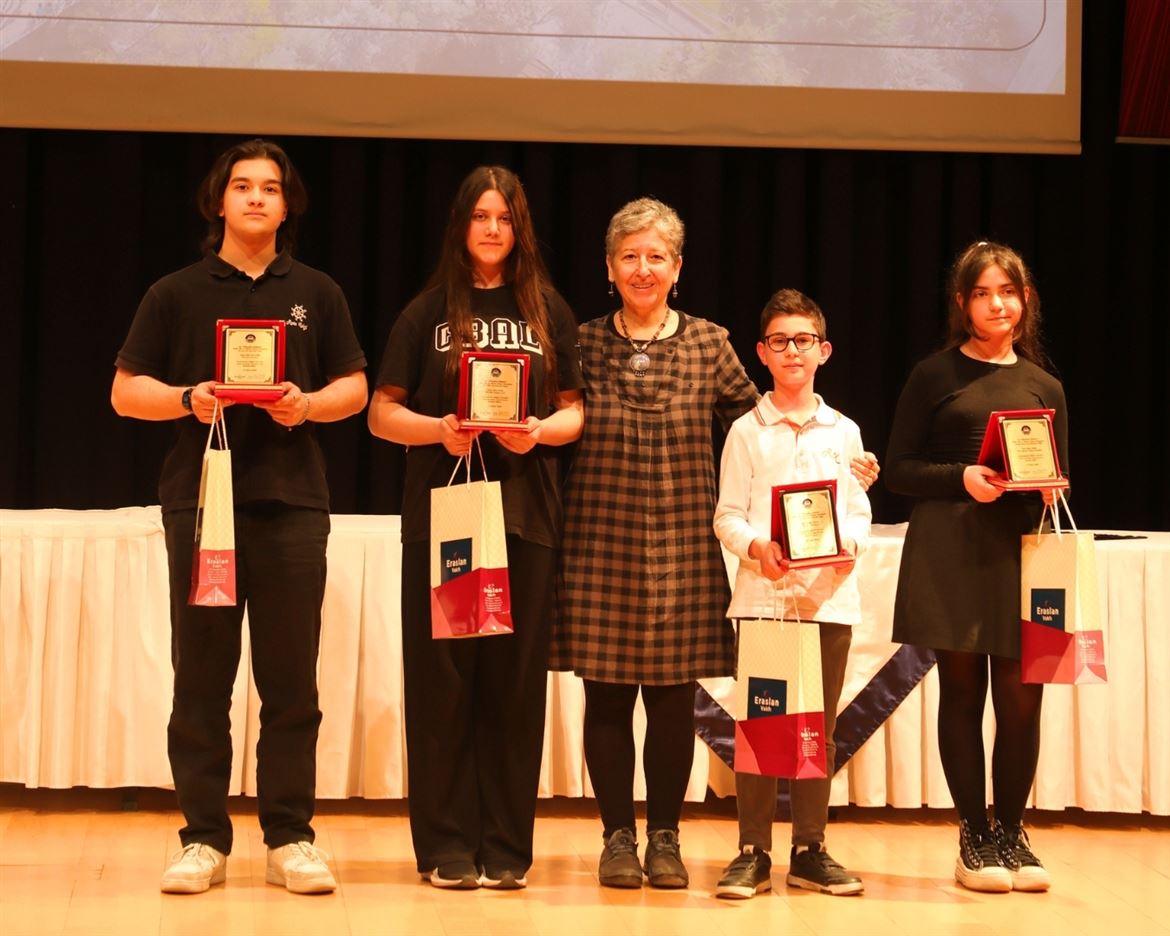 Yarışmamızın ödül töreninde “Ortaokul Öykü, Ortaokul Masal, Lise Öykü ve Lise Şiir” dalında ödül verilirken, “Eraslan Vakfı Özel Ödülü ve Yarışmaya En Çok Eserle Katılım Sağlayan Okul” ödülleri sahiplerini buldu.