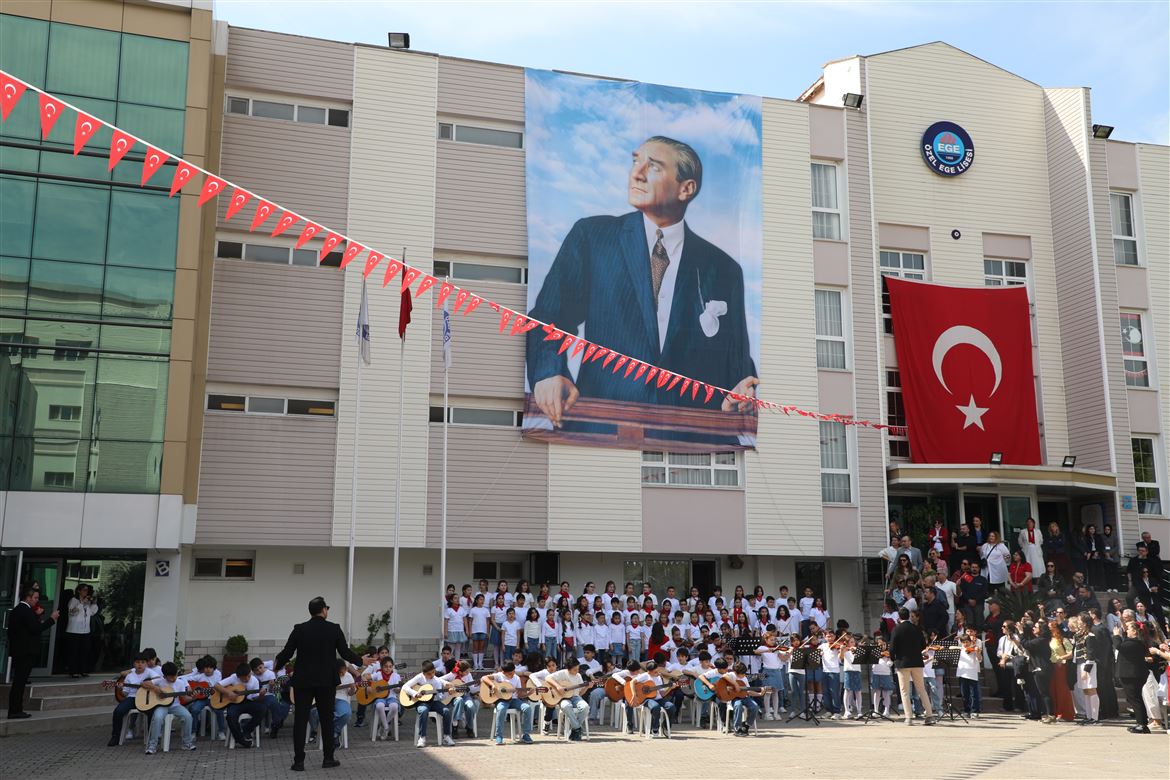 Özel Egeli öğrencilerimizin 23 Nisan konulu konuşmalarıyla başlayan törenimiz; 1. sınıf öğrencilerimizin hoşgörü temalı dans gösterisi, anaokulu 4-5 yaş öğrencilerimizin halk oyunu, 2. sınıflarımızın step gösterisi, 4. sınıf öğrencilerimizin barış temalı dans gösterisi ve anaokulu 6 yaş öğrencilerimizin davul-ritim ve halk oyunları gösterisiyle sürerken “23 Nisan Korosu” ile sona erdi.