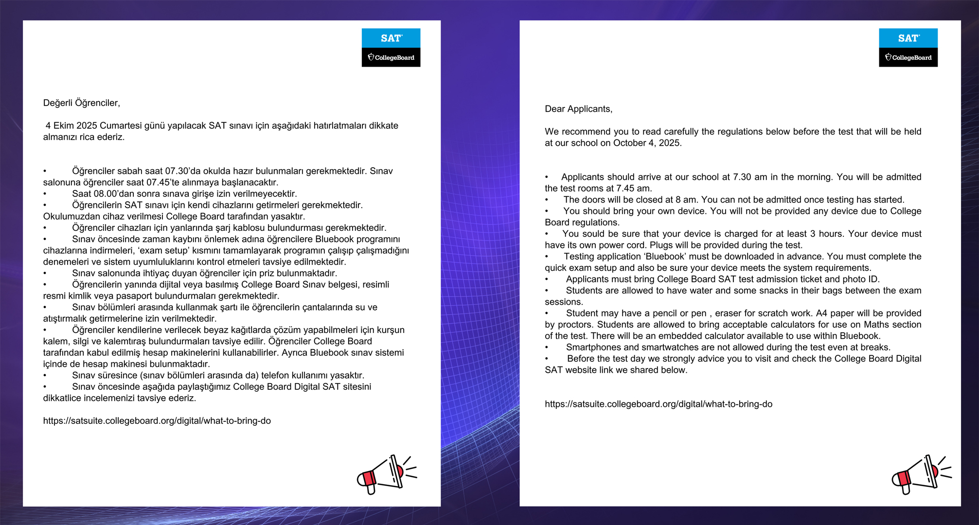 4 Ekim 2025 SAT Sınavı Duyurusu