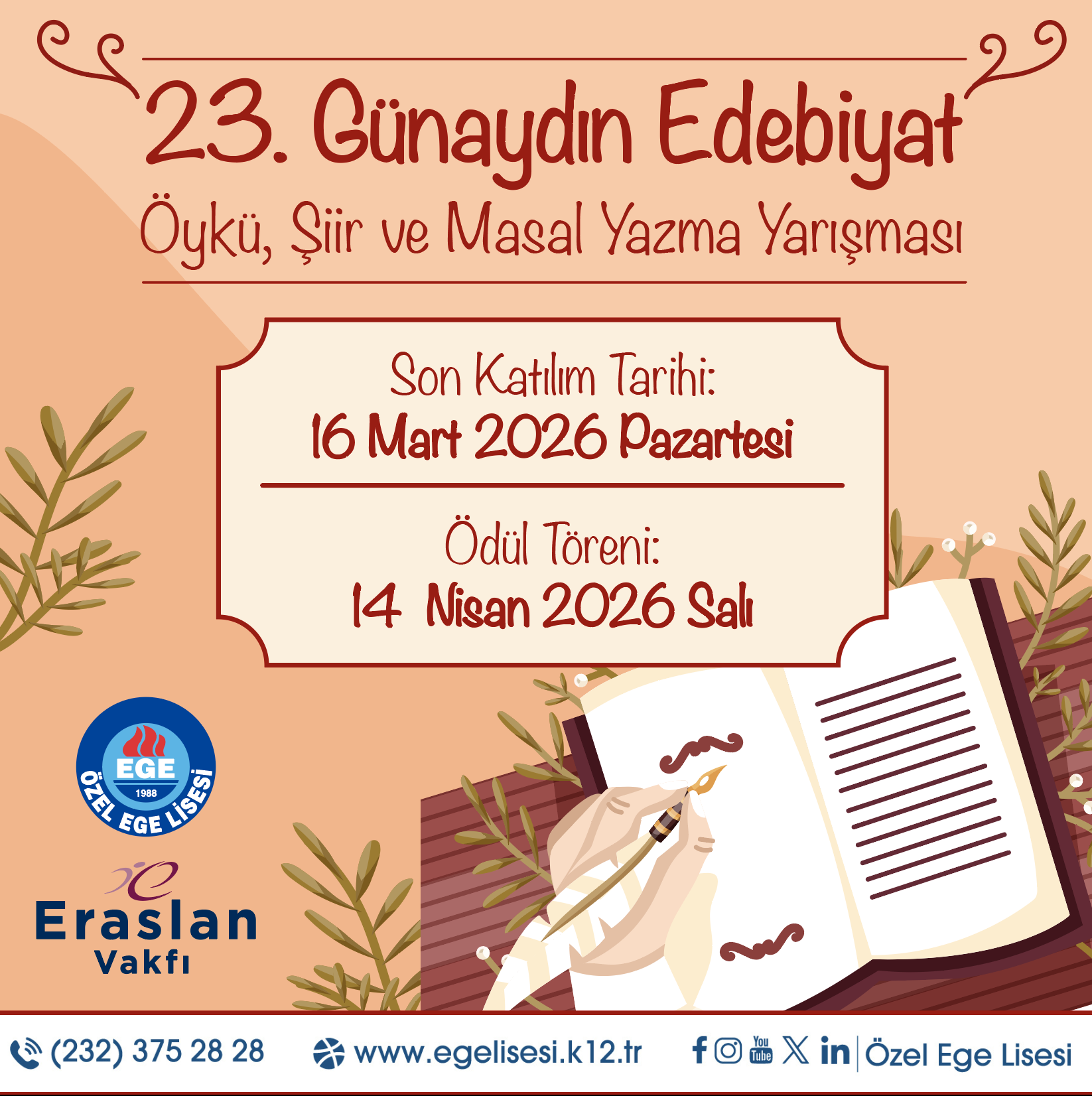 Her yıl çokça öğrencinin eserlerini bizlerle paylaştığı yarışmamız, ortaokul ve lise öğrencilerinin katılımı ile gerçekleştirilmektedir. Bu yıl 23.sünü düzenleyeceğimiz yarışmamızda genç yazarlarımızla buluşmayı diliyoruz.