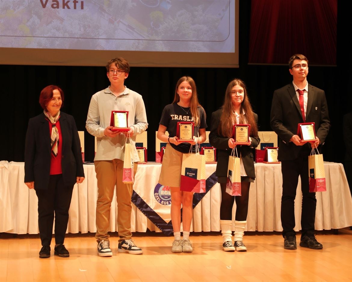 Yarışmamızın ödül töreninde “Ortaokul Öykü, Ortaokul Masal, Lise Öykü ve Lise Şiir” dalında ödül verilirken, “Eraslan Vakfı Özel Ödülü ve Yarışmaya En Çok Eserle Katılım Sağlayan Okul” ödülleri sahiplerini buldu.