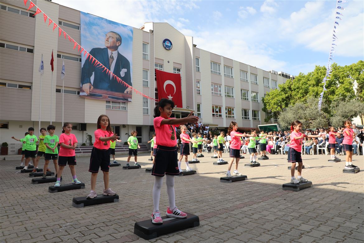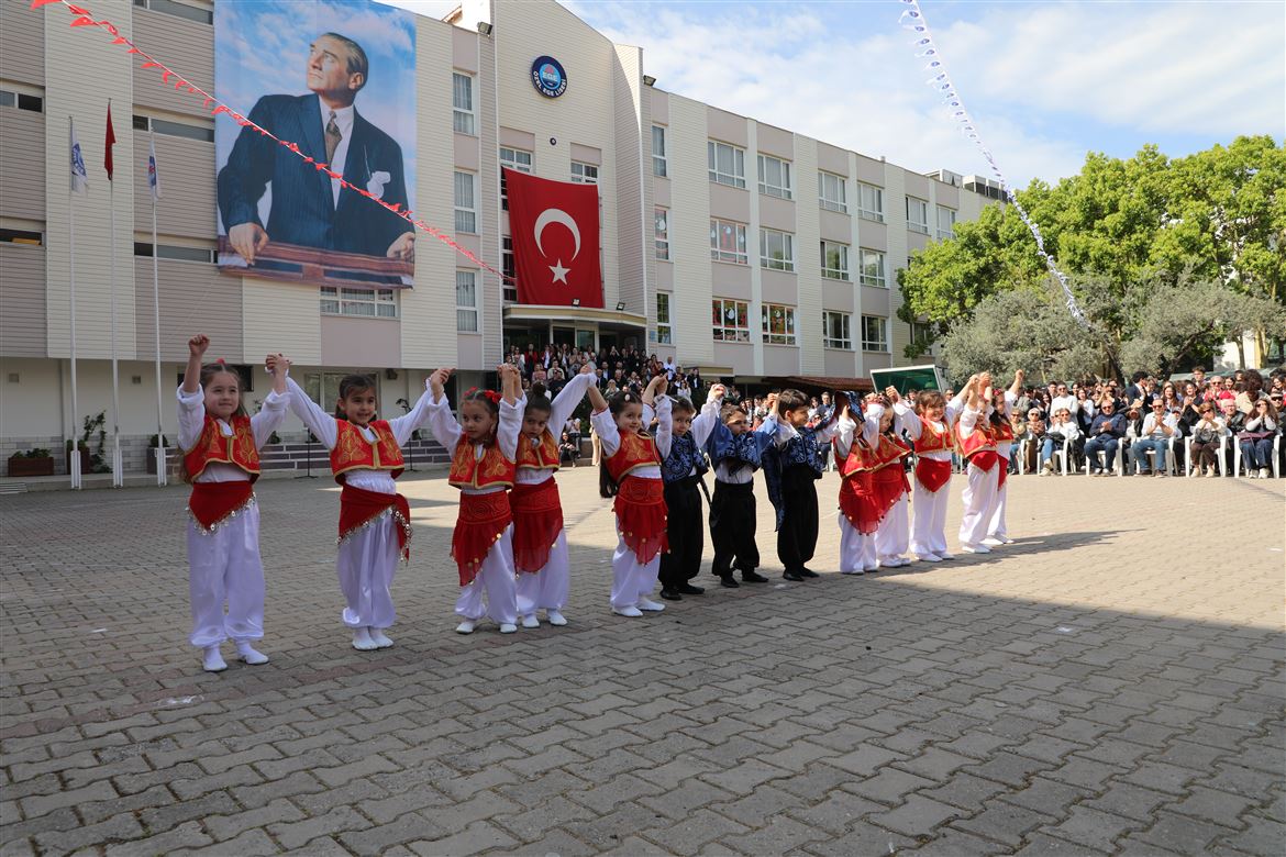 Özel Egeli öğrencilerimizin 23 Nisan konulu konuşmalarıyla başlayan törenimiz; 1. sınıf öğrencilerimizin hoşgörü temalı dans gösterisi, anaokulu 4-5 yaş öğrencilerimizin halk oyunu, 2. sınıflarımızın step gösterisi, 4. sınıf öğrencilerimizin barış temalı dans gösterisi ve anaokulu 6 yaş öğrencilerimizin davul-ritim ve halk oyunları gösterisiyle sürerken “23 Nisan Korosu” ile sona erdi.